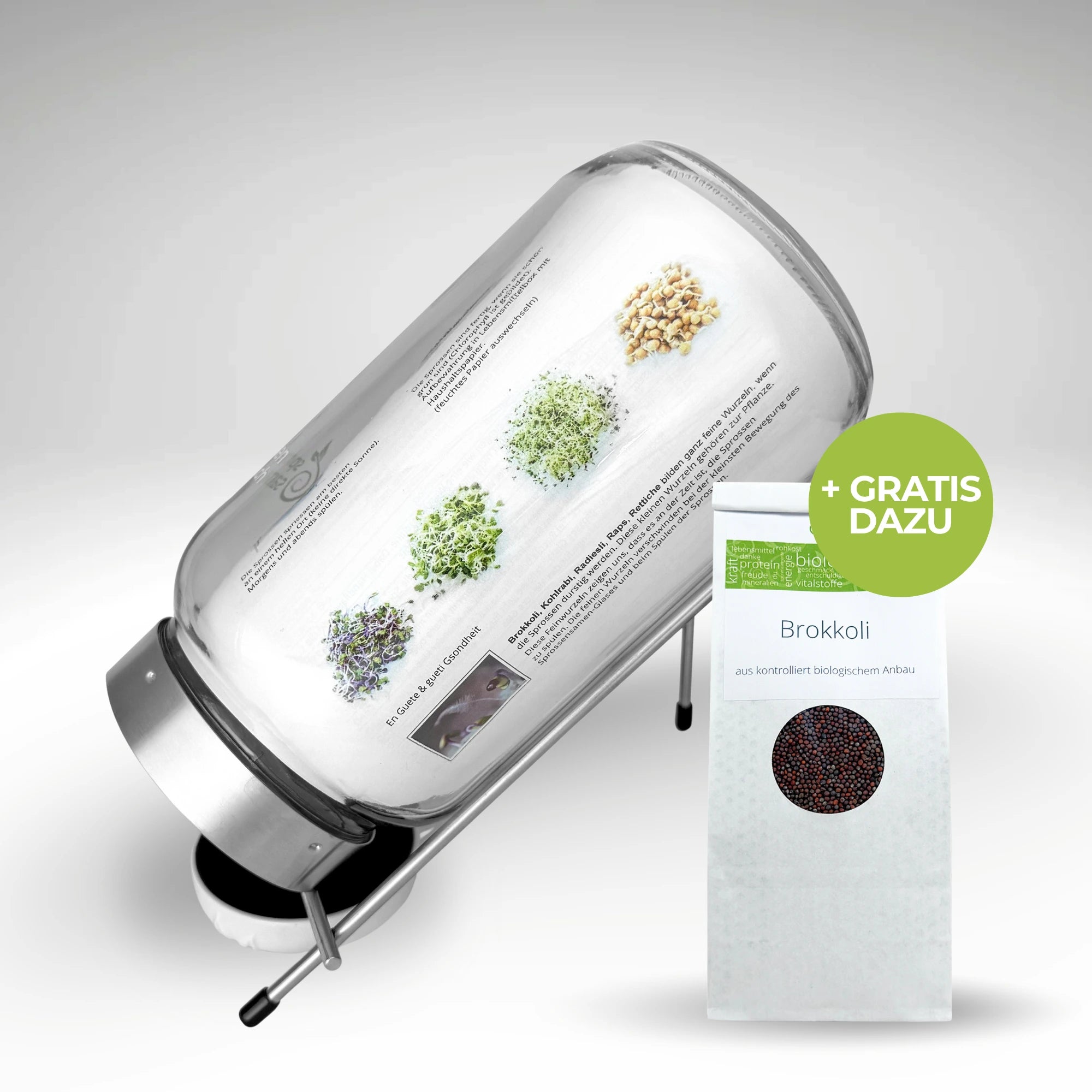 100 % Edelstahl und Lebensmittel zertifiertes Sprossenglas für absloute Qualität